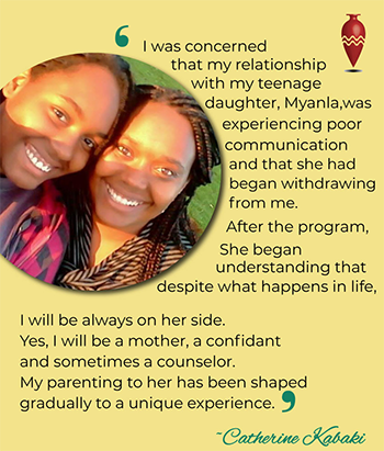 I was concerned that my relationship with my teenage daughter, Myanla Kabaki, was experiencing poor communication and that she had began withdrawing from me when she was sixteen. Her value systems had seemed to have changed since she was rejecting what I had…